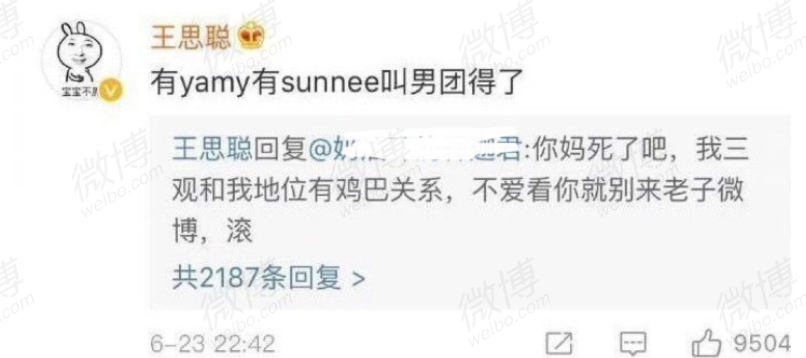 王思聪这种三观不正黑料、臭毛病一堆的人,大可不必站在道德最高点指责。