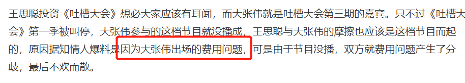 虽说大张伟的那一期没有播出,但他和王思聪在费用上面产生了不小的分歧。