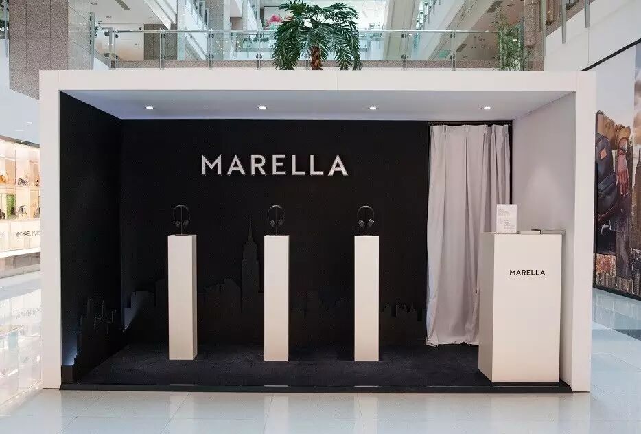 2015年11月底,MARELLA 旗舰店毅然进驻上海港汇恒隆广场,占地约100平方米。全开放式的精品店以黑色金属装饰为主,墙面粉饰则是以柔和的粉色为基调,打造出简约明亮的意式风格。