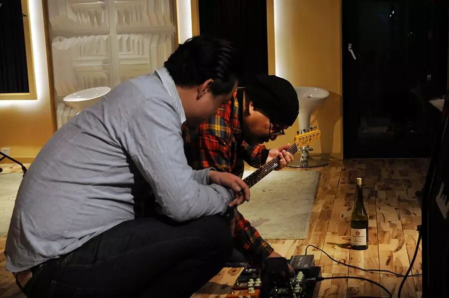 (T-Rex中国区产品经理高先生和艾迪老师一起体验T-Rex新款效果器)