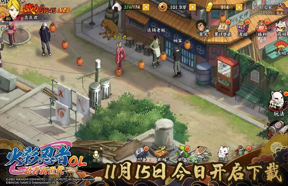 全民忍者跑活动行进至如火如荼之际,《火影忍者OL-忍者新世代》正式宣布,与火影忍者新世代篇章《博人传(BORUTO)》达成合作。在游戏中火影粉丝不仅可以以风、火、土、雷、水任选主角的身份,回到火影忍者故事开始的地方,与第七班共同成长,去经历那些曾经感动、燃烧自己青春的经典剧情。还可以在游戏中体验到博人传的相关内容,去陪伴木叶新一代忍者的成长。两代木叶忍者的青春在《火影忍者OL-忍者新世代》中一并呈现,身为火影粉丝的你怎可错过!