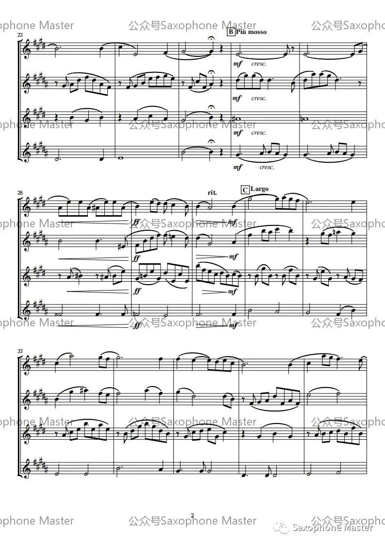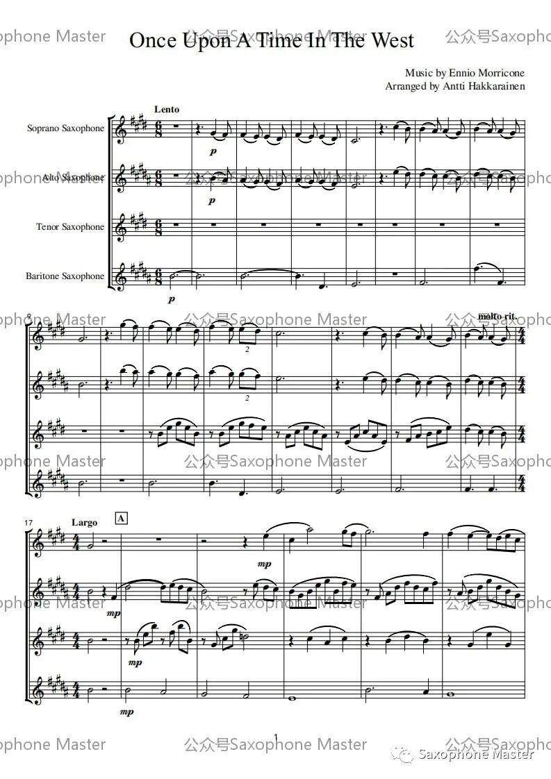 Ennio Morricone《加布里埃尔的双簧管》、《风的哭泣》萨克斯重奏(附谱)