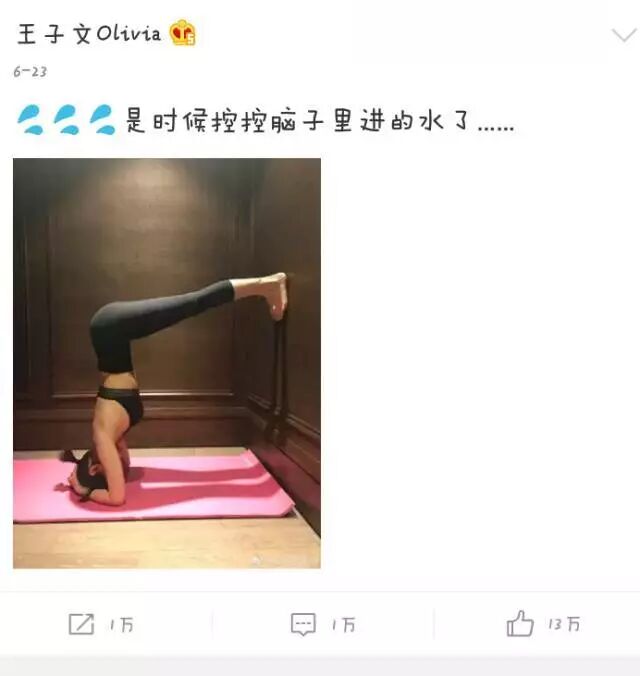 注意模仿王子文的瑜伽需谨慎哦~瑜伽新手不要太强求做高难度动作哈,循序渐进的练习,慢慢你就会感受到身体的变化!