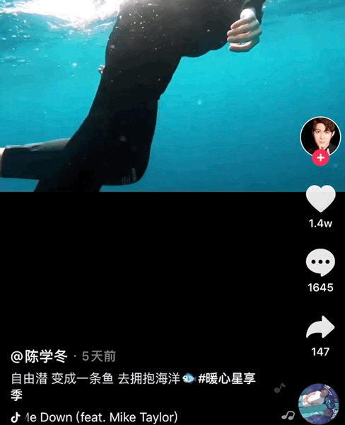 没错,潜水也是陈学冬的爱好之一。
