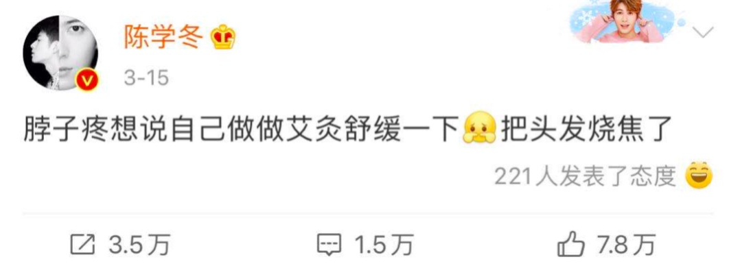 脖子疼想说自己做艾灸舒缓一下,他又把头发烧焦了。
