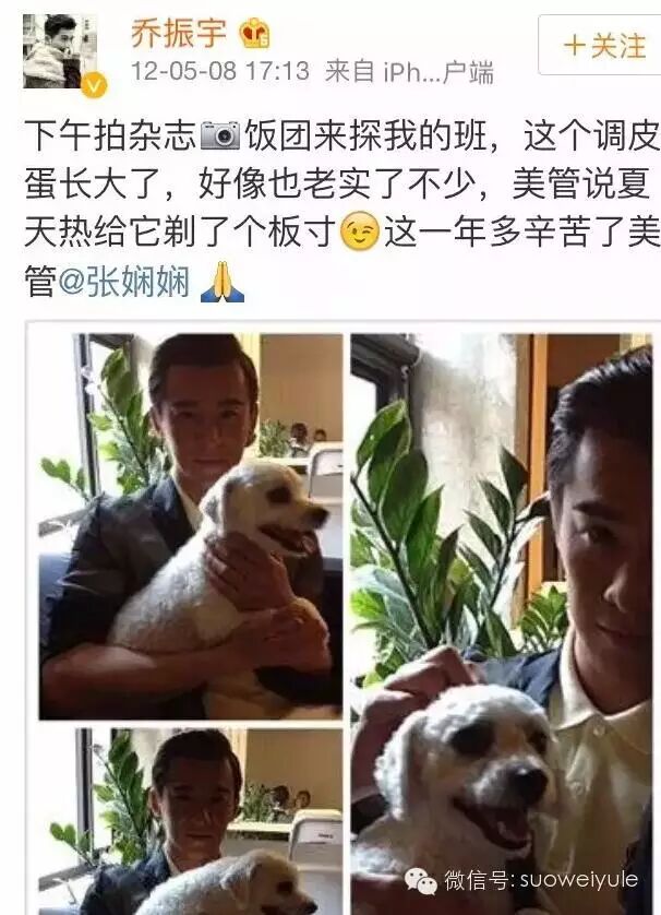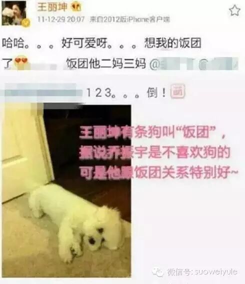 而王丽坤呢?之前被传过的绯闻就只有乔振宇啦。两人微博上还晒过同样的狗狗。
