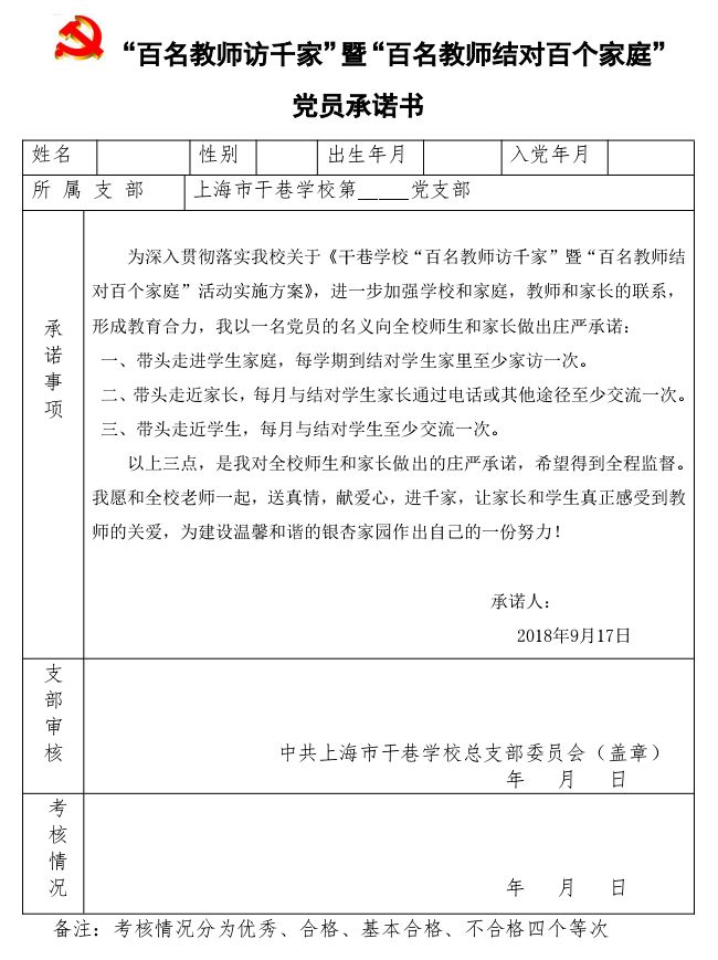 干巷学校的“百名教师访千家”暨“百名教师结对百个家庭”活动已开展多个年头,在活动中,全校党员教师积极参与。