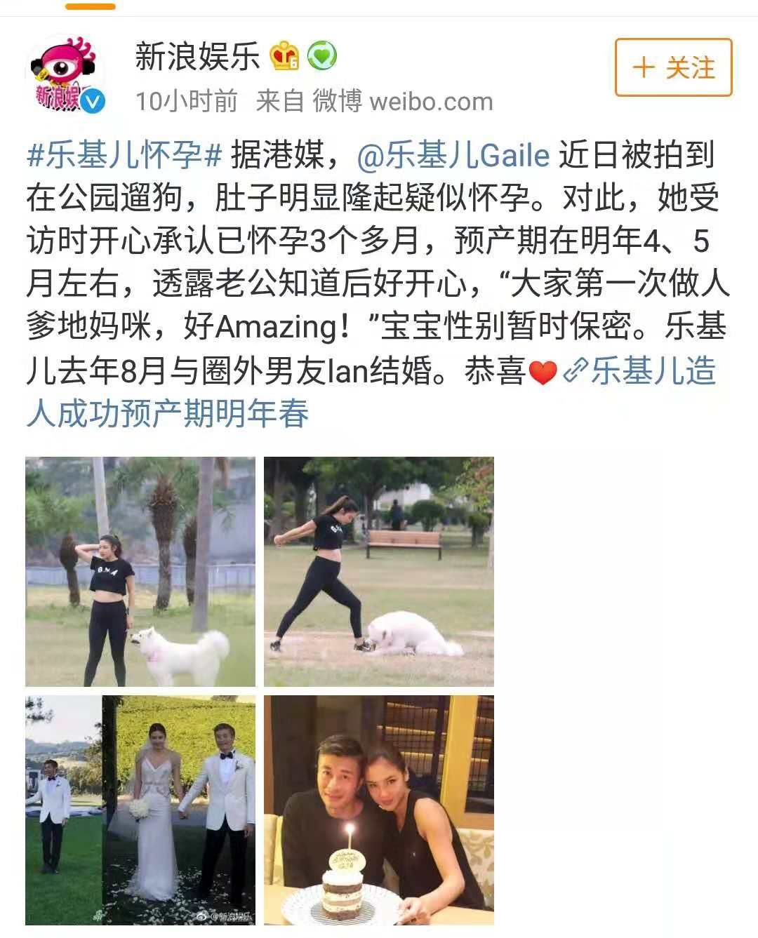 与凌潇肃一道上微博的,是乐基儿怀孕的新闻。