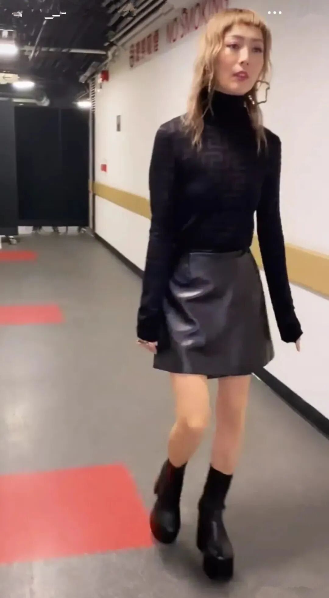 这张照片郑秀文直接穿的这一套黑色还搭配了一条黑色皮裙。虽然显瘦吧,但是这样的感受看起来似乎没那么好看,而且整体看起来有一点点不健康,一点女人味都没有,竟然她的胸也是平平无奇,没有以前那样性感。