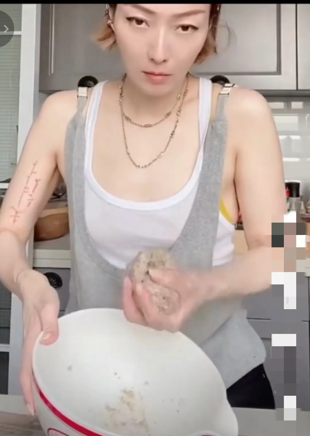 在看这张照片中,郑秀文正在家中洗碗,整个人的形象可以说是特别的简单,搭配这一条白色背景也是很朴素。虽然整体看起来很憔悴,但好在她非常热爱生活,所以精神上看起来的话还是很饱满的。
