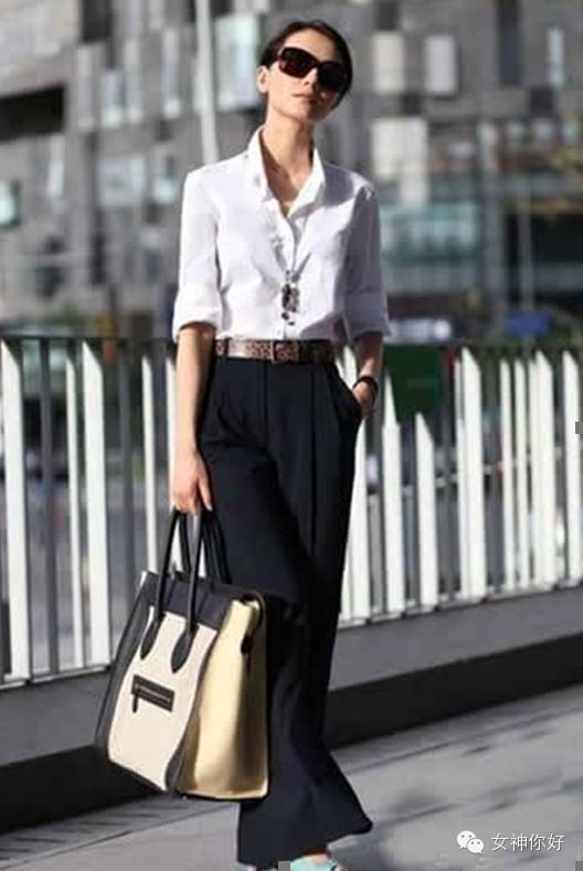 OL装扮的高圆圆总能给人一种成熟优雅的气质,白衬衫黑色阔腿裤,黑白经典搭配,超显气质。搭配囧包,墨镜,御姐范儿十足。