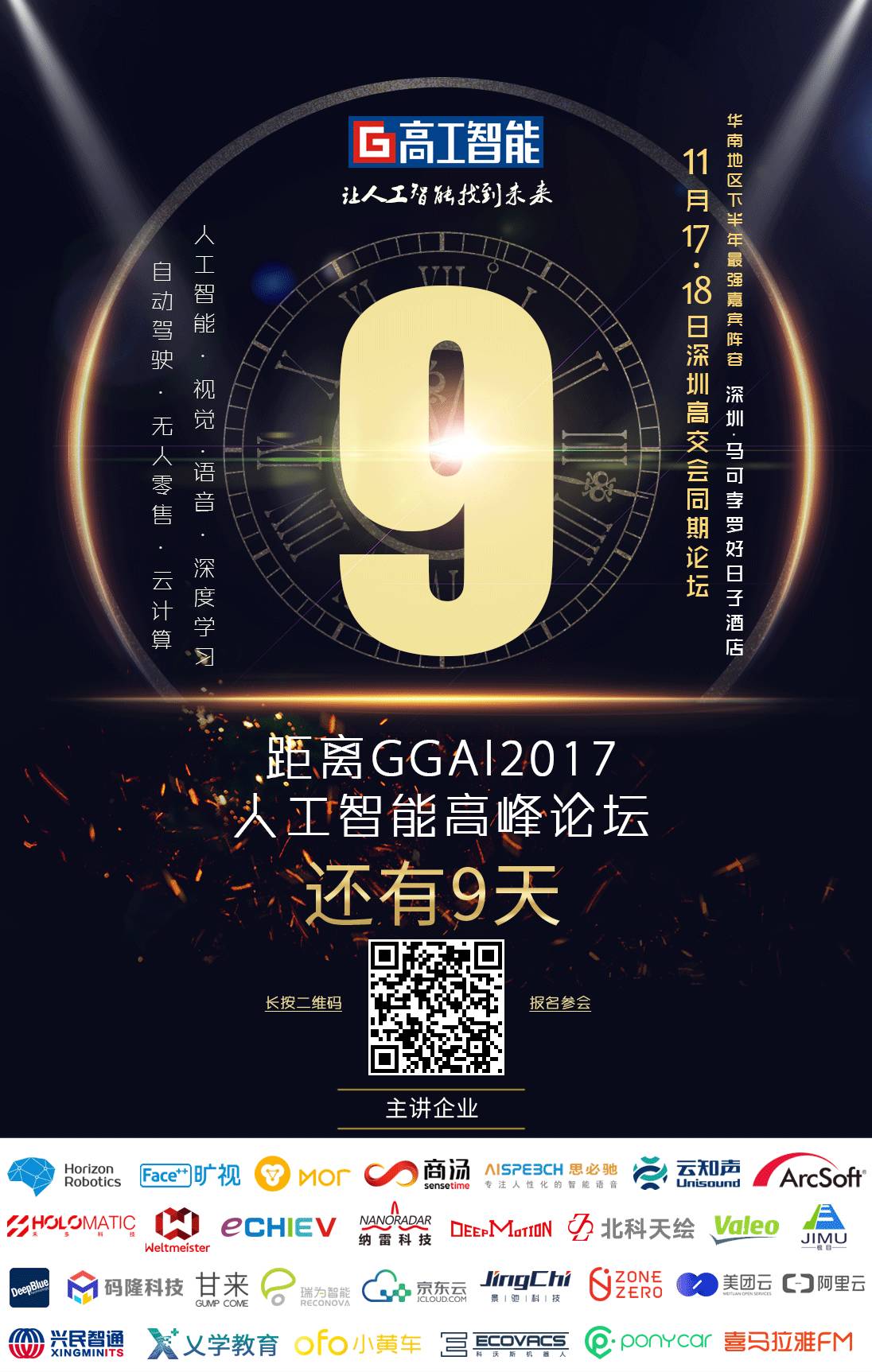 【GGAI 2017 高工人工智能高峰论坛倒计时 9 天】大会早鸟票销售截止 10 月 28 日,地平线、商汤、旷视、云知声、蓦然认知,广汽、图森、纳雷、Deepmotion、易成自动驾驶、中科天绘、甘来科技、零号元素、瑞为智能、码隆科技、Ponycar、兴民智通、乂学教育、科沃斯、喜马拉雅、英伟达、百度、美团云等企业重量级嘉宾已确认出席。