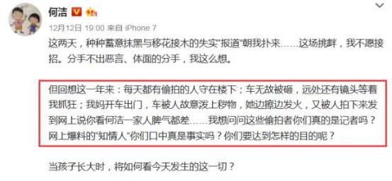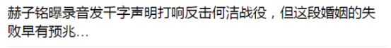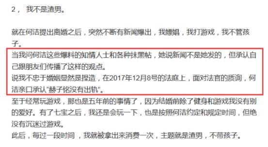 随后,赫子铭发微博声明:何洁出轨,我没出轨。
