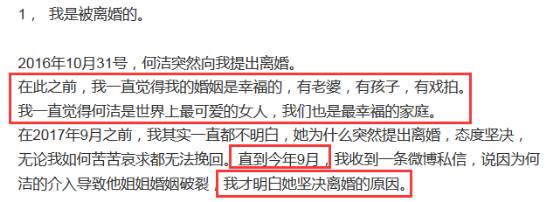 这一面强调了自己对何洁婚内忠诚的信任,另一面反驳了外界对他抹黑何洁出轨的指责——我都不知道她出轨,怎么会黑她出轨呢。
