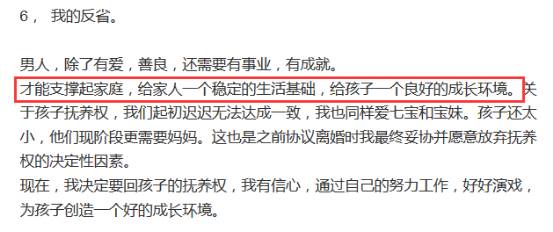 看他最近发布的离婚声明,第六条“我的反省”,表达的全部都是身为父亲的失职。