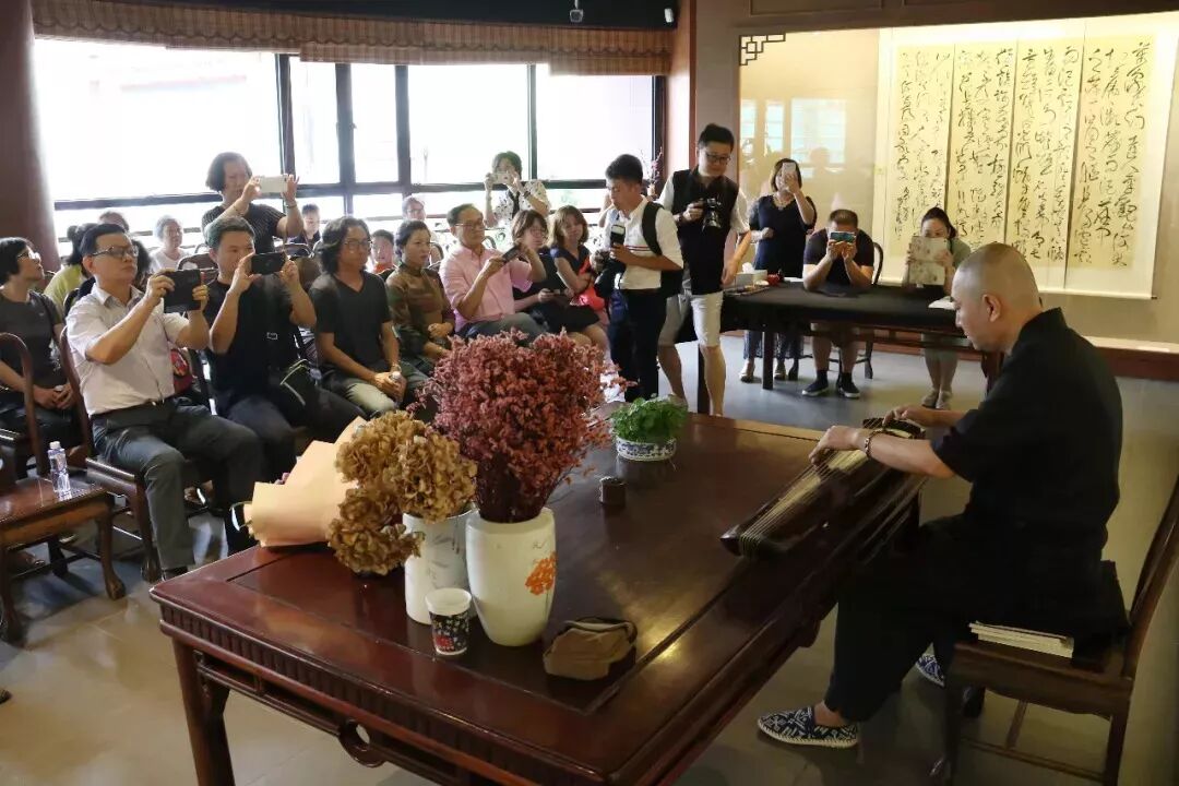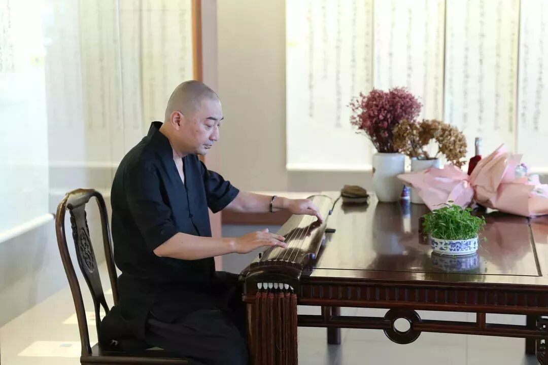 黄先生现场演奏古琴,琴声悠扬婉转。