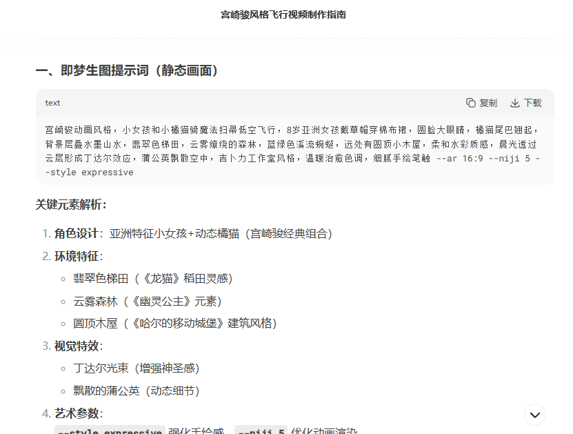 借助 Deepseek 打造宫崎骏风动画短片,单日轻松赚千元!零经验新手也能快速掌握的变现玩法~ 杰哥的网创笔记 日韩男星 2025-06-14 16:11:33 2858 创作不易,用心坚持,欢迎请BaGua喝几杯爱心咖啡!打赏并支持本文 打赏并删除本文 大家好!我是杰哥!兄弟们!我每天都会在这儿分享一个靠谱副业项目,帮你解锁搞钱新思路。觉得有用的兄弟,赶紧点个关注,别错过任何一个赚钱机会!今天我要分享的是用AI工具制作“宫崎骏风格视频",宫崎骏风格的图文或者视频在小红书、抖音都是非常受欢迎的:它的作品有一魔力,用漂亮画面抓住我们的眼球,再通过真实的情感和人生道理把我们留住,这个是这种风格最妙的地方。接下来我手把手教大家如何制作这类视频:我们先看下这类视频的点赞量跟播放量是非常高接下来,我们拆解一下此项目!1、首先我们要准备的工具有:Deepseek:https://chat.deepseek.com(点击此链接可以直接跳转)即梦AI:https://jimeng.jianying.com(点击此链接可以直接跳转)剪映我们给Deepseek一个指令(最好是打开“深度思考”、这样生成的提示词质量更好!)让它帮我们输出一个AI图片提示词,当然我们自己要是有新意的话,也可以直接按照自己的提示词去即梦AI去生成图片;我们将Deepseek生成的图片提示词复制(如果提示词不不理想,可以重复再次生产,最终选择自己想要的提示词),然后打开即梦AI,将生成的提示词粘贴到对话框中,然后选择:“图片3.0模型、比例:9:16高清模式”,点击生成图片;生成的图片效果如下图,如果觉得不够好,重新生成;直到生成自己喜欢的图片即可!接下来,选择自己喜欢的视频,然后从Deepseek找到对应的视频提示词,让图片动起来(具体提示词输入框如下图);多生成几段视频,然后我们将视频导入剪映,即梦不开会员的话,我们下载下来的视频是有水印,我们在导入剪映的时候使用放大或者裁剪的剪辑方式去掉视频的水印,以免平台会管控!给视频选择合适的配音、增加贴纸、加滤镜、转场等,就可以导出视频了。我们这样剪辑完成的视频就是原创视频。将视频可以发布小红书、抖音、视频号、快手等各大短视频平台!2、项目变现方式:1、各大短视频平台都有分成计划,达到一定的分析要求就可以开通,享受广告分成;2、可以开通商铺,我们上架一些宫崎骏的挂件,桌面摆件,以及拼图绘本等,带货赚钱;3、等我们有一定的粉丝基础后,还可以收徒变现,这个就是我们将自己学会的东西,一比一复制给别人,我们收一点辛苦费!3、注意事项:做网络项目选好赛道后要持续输出,前期流量不太好,要坚持;我分享的项目未必适合所有人,只是为了给在互联网找项目的兄弟们一个信息差,是否契合自身、能否盈利,还需结合实际情况多考量。建议先小规模尝试,多验证可行性,再次批量操作!有什么不懂的欢迎来问我,我们一起在互联网道路上持续深耕下去!以下是我个人的网站,每天都会更新几十个优质项目,感兴趣的伙伴可以扫描了解一下! 创作不易,用心坚持,欢迎请BaGua喝几杯爱心咖啡!打赏并支持本文 打赏并删除本文 感谢您的支持鼓励,我会继续努力的!文章地址:用户邮箱:打赏金额:USDT 请输入数字点击”去打赏“,即可进行打赏支持本文章哦 宫崎骏 发表评论