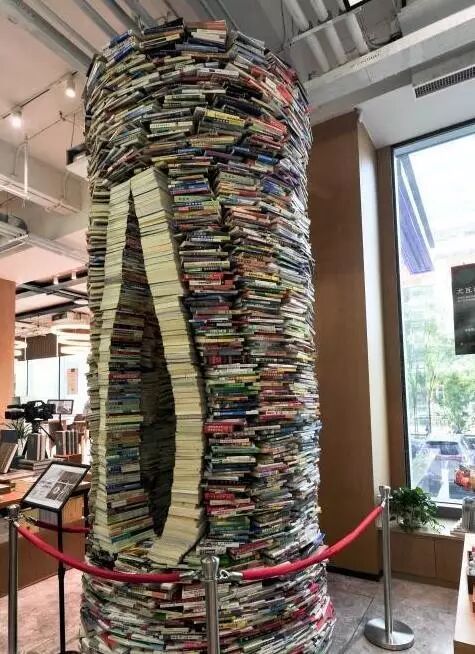 ◆ 沈阳书店用7000余册图书建4米多高巨型“书塔”