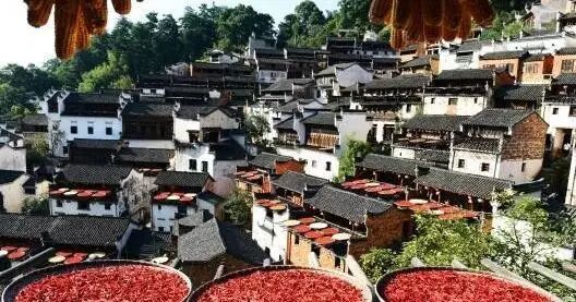 ◆ 江西婺源山村金秋时节 竹匾晒出丰收果实