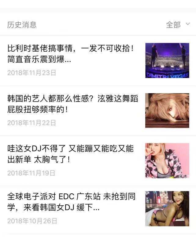 此外,如果你关注过电子音乐类公众号还会发现,其中有不小的一部分主打的传播内容,总是关于电子音乐如何和生理欲望扯上某种联系:女DJ的最大优势不是才华,而是大胸细腰;电音节的主要任务不是听歌,而是开房打炮。