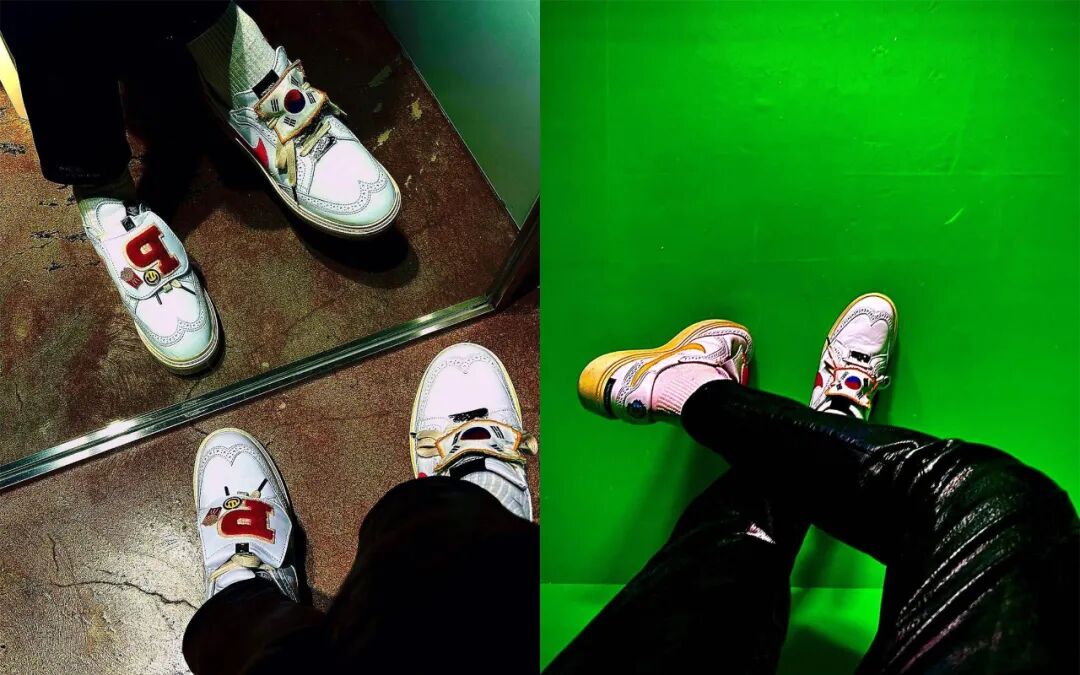 现场的气氛也被权志龙带的足足的,最值得注意的是他本人脚上穿着的鞋款,可能是全球独一无二的,因为是自己 DIY 的亲友限定 PEACEMINUSONE x Nike Kwondo 1!