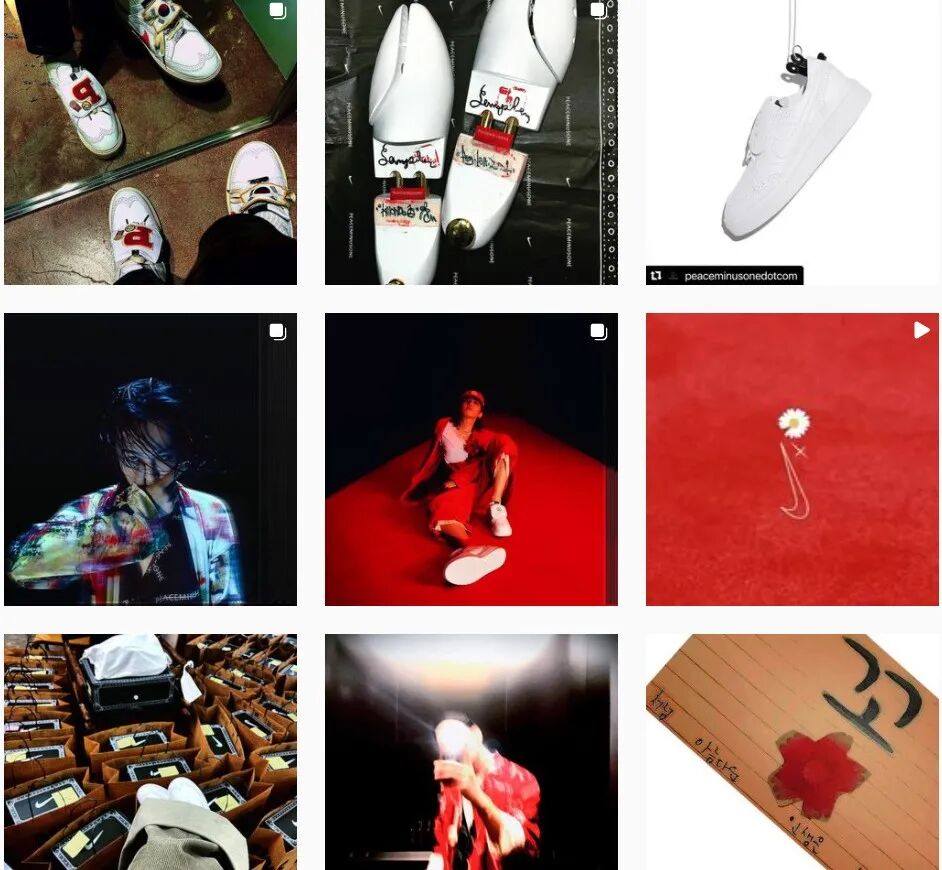 从九月份起,权志龙个人社交平台就开始预热自己品牌 PEACEMINUSONE 与 NIKE 联名的这双新鞋款,权志龙为了带货也是拼了..