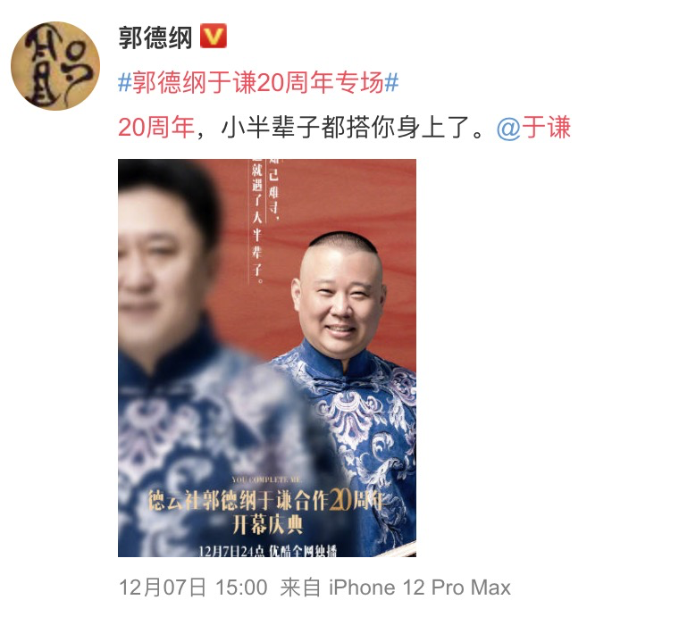 郭德纲才向于谦发出邀请。
