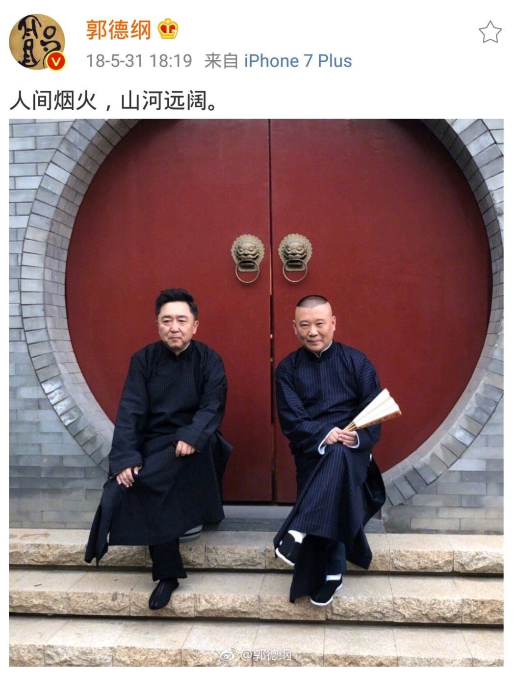 郭德纲曾发博配文:“人间烟火,山河远阔”,