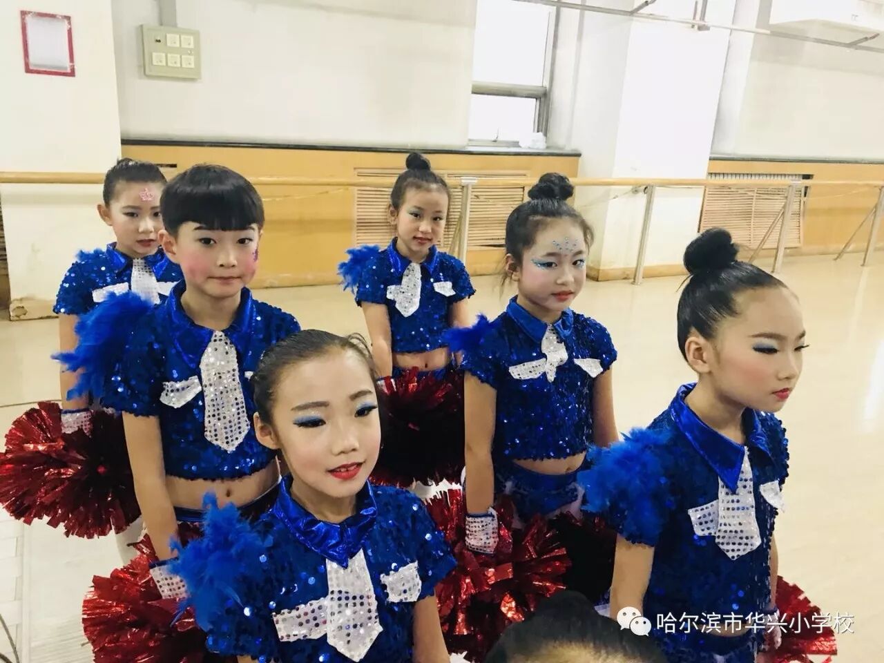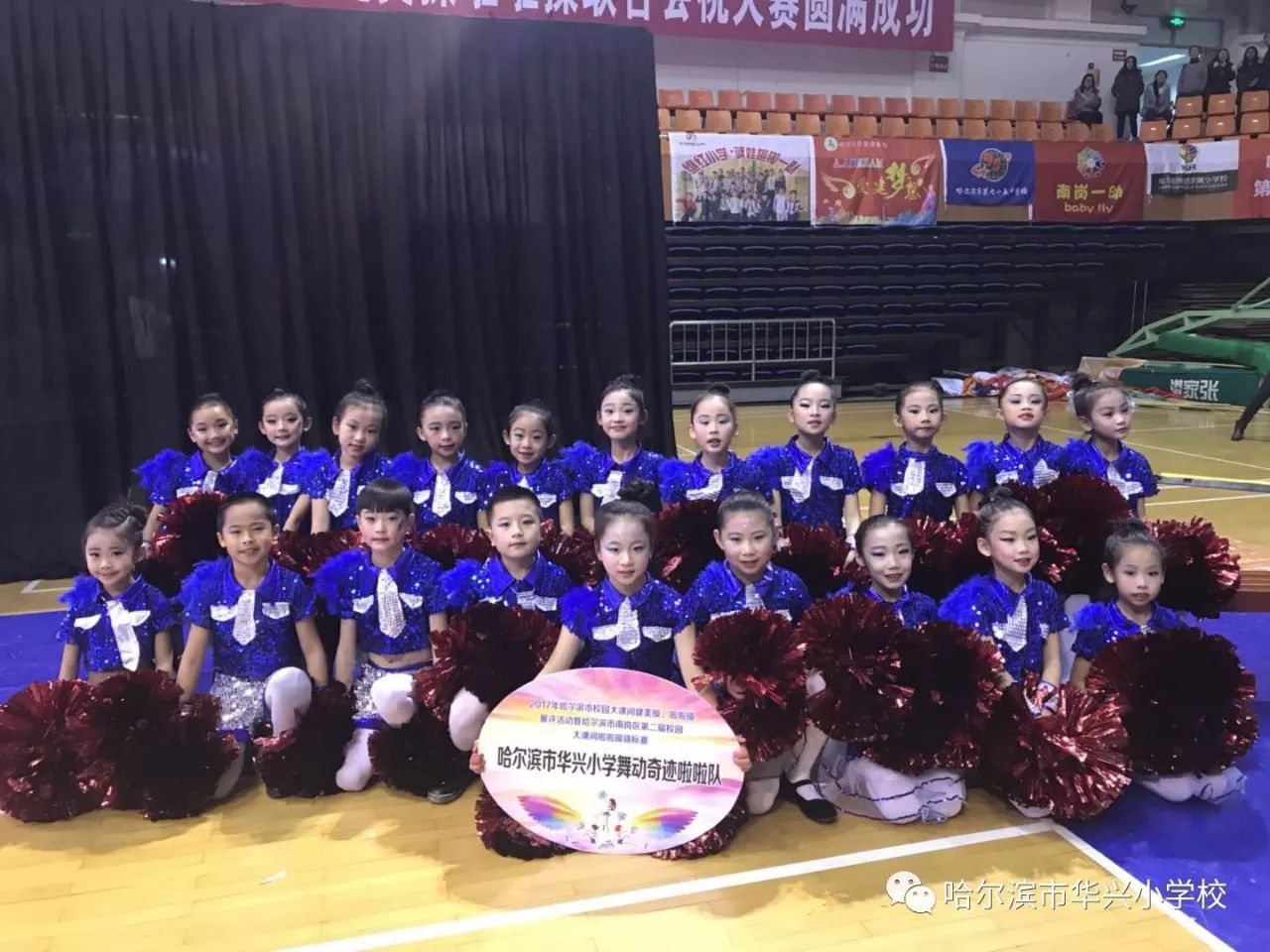 2017年11月11日上午9时,由哈尔滨市教育局主办、南岗区教育局承办的2017年哈尔滨市校园大课间健美操啦啦操展评活动暨南岗区第二届校园大课间啦啦操锦标赛在黑龙江大学体育馆隆重举行。大赛吸引哈尔滨市68所学校,共102支优秀队伍,3500多名青少年儿童参加。开幕式场面震撼,比赛现场犹如一场视觉盛宴。华兴小学派出了由20名二、三年级学生组成的“动感华兴”代表队,在滕昭主任、大队辅导员谢晓曦老师、体育组李冬雪老师的带领下参加本次大赛。赛场上动感的音乐配以靓丽的服装,小队员们整齐热烈的舞蹈,充分展示了华兴学子朝气蓬勃、奋发向上的精神风貌,最终华兴小学获得了俱乐部公开少年丁组大课间花球季军,最佳风采奖。