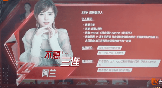 不过虽然嘴上说着要努力,阿兰在节目里却是各种不想:不想尝试摇滚和说唱这种颠覆性的风格,也不想跳舞,只想尝试能够融合民族音乐的舞台。