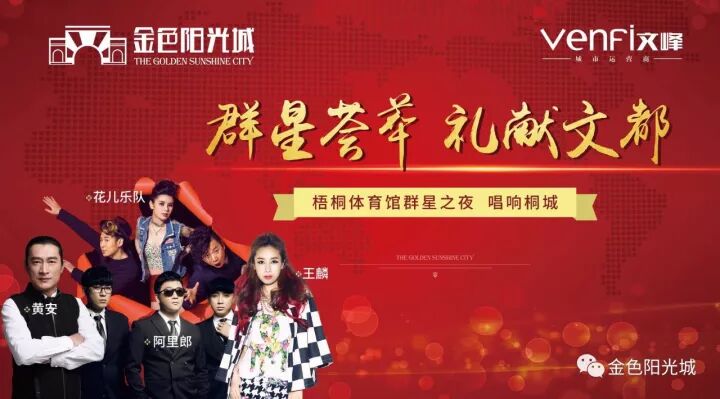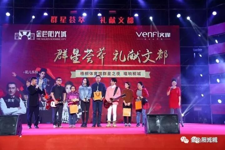 星光璀璨,万众瞩目。11月12日晚,金色阳光城“群星荟萃 礼献文都”群星演唱会于梧桐国际体育馆完美落幕。众多明星唱将现场倾情演绎,一场华丽的视听盛宴,礼献桐城。