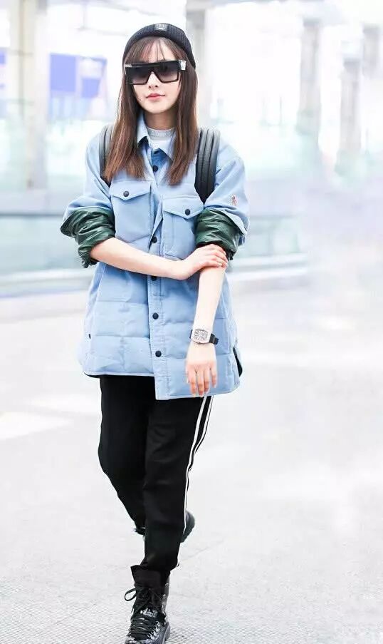 张天爱穿着一件浅蓝色的棉衣,搭配一顶黑色的帽子,很是洋气,轻松就可以打造出安静文艺的氧气范,但这也是要看人的,没有颜值的人还是不要去尝试了。最有个性的还是张天爱的太阳眼镜了,很是不羁,独特的设计让她充满了时尚的味道。