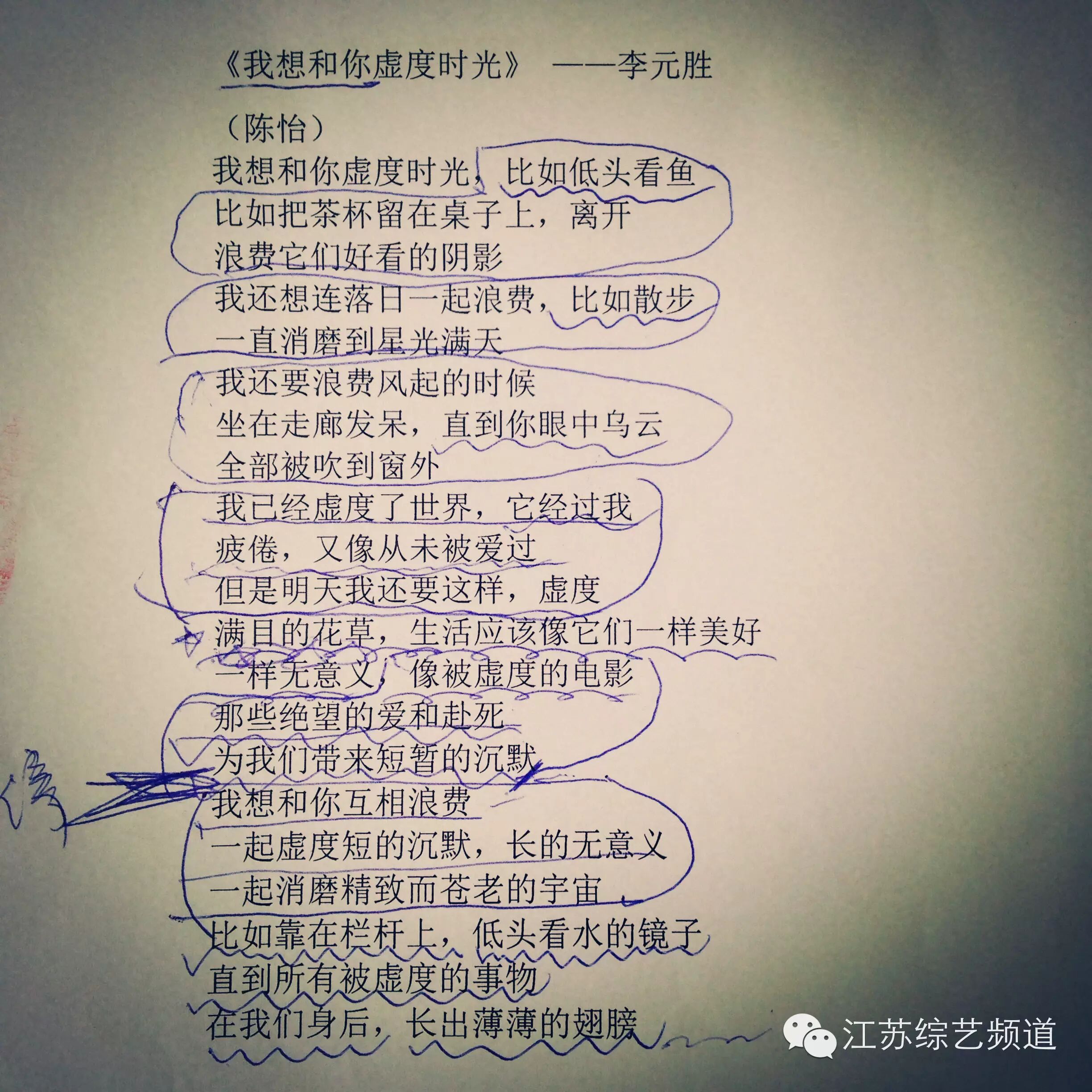 【为你读诗】陈怡,回归;我们,想和你虚度时光. 江苏综艺频道 内地女星 2015-05-29 17:08:05 865 创作不易,用心坚持,欢迎请BaGua喝几杯爱心咖啡!打赏并支持本文 打赏并删除本文 我想和你虚度时光——陈怡雪花和花瓣,早春和微风,细沙和风暴,每个孩子的感受都是独特的,就像指纹那样不可重复——这一切都是诗意——北岛六一,江苏综艺频道为孩子们献上一份用音乐与诗做成的特殊礼物,陈怡、陆之瑞等十名综艺频道主持人的集体发用朗诵的形式把优美而动听的诗歌送给孩子们,有的清新,有的励志,伴随着主持人们的声音让人久久回味。好久不见的陈怡专程从北京赶回,认真地在稿纸上标注、推敲,一遍遍地尝试,只求最好的录音效果。当年那个《非常周末》里经常说要“带着小包包流浪天涯”的陈怡姐姐,依旧美丽温婉,只是一颗童心从未改变。她选择了自己很喜欢的《我想和你虚度时光》,轻缓、宁静,就像初夏的树荫、清晨的湖面。听陈怡,《我想和你虚度时光》,享受宁静片刻;精美H5页面请戳原文诗说我想和你虚度时光,比如低头看鱼比如把茶杯留在桌子上,离开浪费它们好看的阴影我还想连落日一起浪费,比如散步一直消磨到星光满天我还要浪费风起的时候坐在走廊发呆,直到你眼中乌云全部被吹到窗外我已经虚度了世界,它经过我疲倦,又像从未被爱过但是明天我还要这样,虚度满目的花草,生活应该像它们一样美好一样无意义,像被虚度的电影那些绝望的爱和赴死为我们带来短暂的沉默我想和你互相浪费一起虚度短的沉默,长的无意义一起消磨精致而苍老的宇宙比如靠在栏杆上,低头看水的镜子直到所有被虚度的事物在我们身后,长出薄薄的翅膀李元胜,1963年8月出生于四川省武胜县,诗人,作家。1983年毕业于重庆大学。现为中国作家协会会员,重庆日报社文化新闻部主任,重庆市作家协会第二届副主席。1981年开始写诗,成为重庆大学新时期第一位校园诗人,毕业后一直活跃在中国诗坛。对于孩子和过去的我们来说,在草坪上追打玩闹是一天的开始,时间再这些玩闹中才真正有意义,而不是子啊课堂里。可惜我们总认为玩闹不过是虚度时光。“只要和你在一起玩就很好”,这是小孩子的念想,至于时光虚度不虚度又有什么紧要,虚度就虚度了。有人陪着虚度,时光就有价值,世界就清澈、明亮。一个陪伴才能战胜了一切虚度。图说摄影师奥利维亚·拉腊因(Olivia Larrain)没有拍过任何摄影主题,所有的照片只是按不同的颜色分组:黄、橙、红、绿、蓝……很难分开她的工作与生活,那些模特都像是她的朋友,而朋友和身边的猫猫狗狗也都成为她的模特。与其说她是在打破模特与环境的隔阂,不如说是在使摄影回归日常生活。就像朋友提醒她的那样:别为艺术创作而推翻自己的生活,而是要不断深入它,直到在其中发现永不枯竭的美。乐说背景音乐来自程璧2015年3月推出的专辑《我想和你虚度时光》。程璧,毕业于北京大学外文系,旅日音乐人、独立民谣女歌手、摄影师。2015年3月,发行专辑《我想和你虚度时光》。程璧拥有两个音乐地域,同时活跃在北京和东京,两个不同文化形态和语言的舞台上。她用一种声音唱出两种语言里的忧伤,一把吉他弹奏出两种语言里的向往。她的旋律里有森林和村庄,也有太阳和月亮,她的旋律不是大海大河,而是涓涓小溪,奔流不息地向着远方的远方。程璧的音乐很美,也很有画面感,能给人以无限遐想的空间,脑海中会缓缓地略过一幅幅画面,自然、和缓、唯美、静谧,让人很轻易就会在思绪中停留。如果你也喜欢《为你读诗》,欢迎参与互动。我们将从5月24日起至6月2日,每天为你推出主持人读诗系列,还有台湾著名诗人参与,一起给孩子们一个不一样的六一记忆,让他们在诗与音乐的世界里成长。只要你关注“江苏综艺频道”的官方微信,回复“为你读诗+任何你想说的内容(包括你喜欢的诗、分享朋友圈的截图、告诉我们你喜欢的读诗主持人、你关于童年的记忆等……)”就有机会获得三位台湾诗人签名的珍贵诗集以及经典儿童绘本等礼物。应个景,更多奖品和惊喜,欢迎下载江苏综艺手机摇摇乐~~精美的H5页面请阅读原文,欢迎关注和转发,参与互动赢大奖。 创作不易,用心坚持,欢迎请BaGua喝几杯爱心咖啡!打赏并支持本文 打赏并删除本文 感谢您的支持鼓励,我会继续努力的!文章地址:用户邮箱:打赏金额:USDT 请输入数字点击”去打赏“,即可进行打赏支持本文章哦 About the Author 江苏综艺频道 功能介绍:节目信息发布 官方认证:江苏省广播电视总台 Related Posts 遇见|陈怡x陆之瑞 2019-03-15 15:14:24 陈怡 | 生逢其时,以梦为马 2018-12-19 18:47:34 【一转成双】全新开篇:婚姻中的陌生人 2017-01-01 18:03:24 陈怡,深怀念想 ,一任天机. 2016-12-28 17:38:34 【夏至】陈怡陪你度过最有诗意的时光. 2016-06-21 17:32:36 发表评论