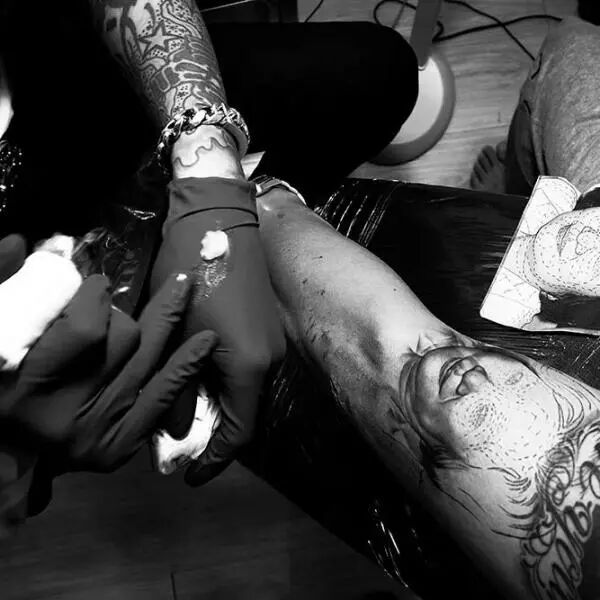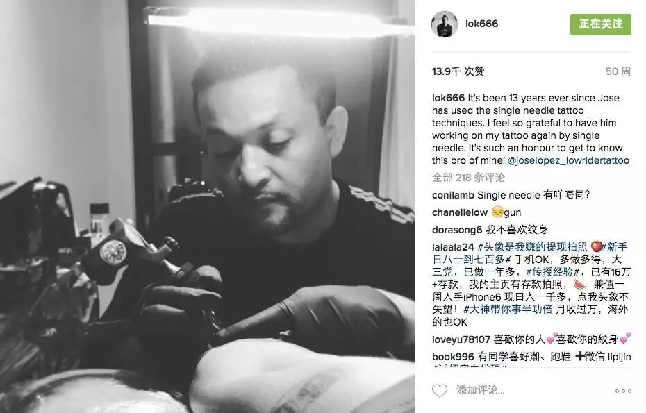 说起来这些年来扎图狂魔余文乐添了很多图,其中绝大多数都是找的Jose Lopez这样级别的外国知名纹身师,相当挑剔的他在国内唯独找了Josh一人给自己扎图。