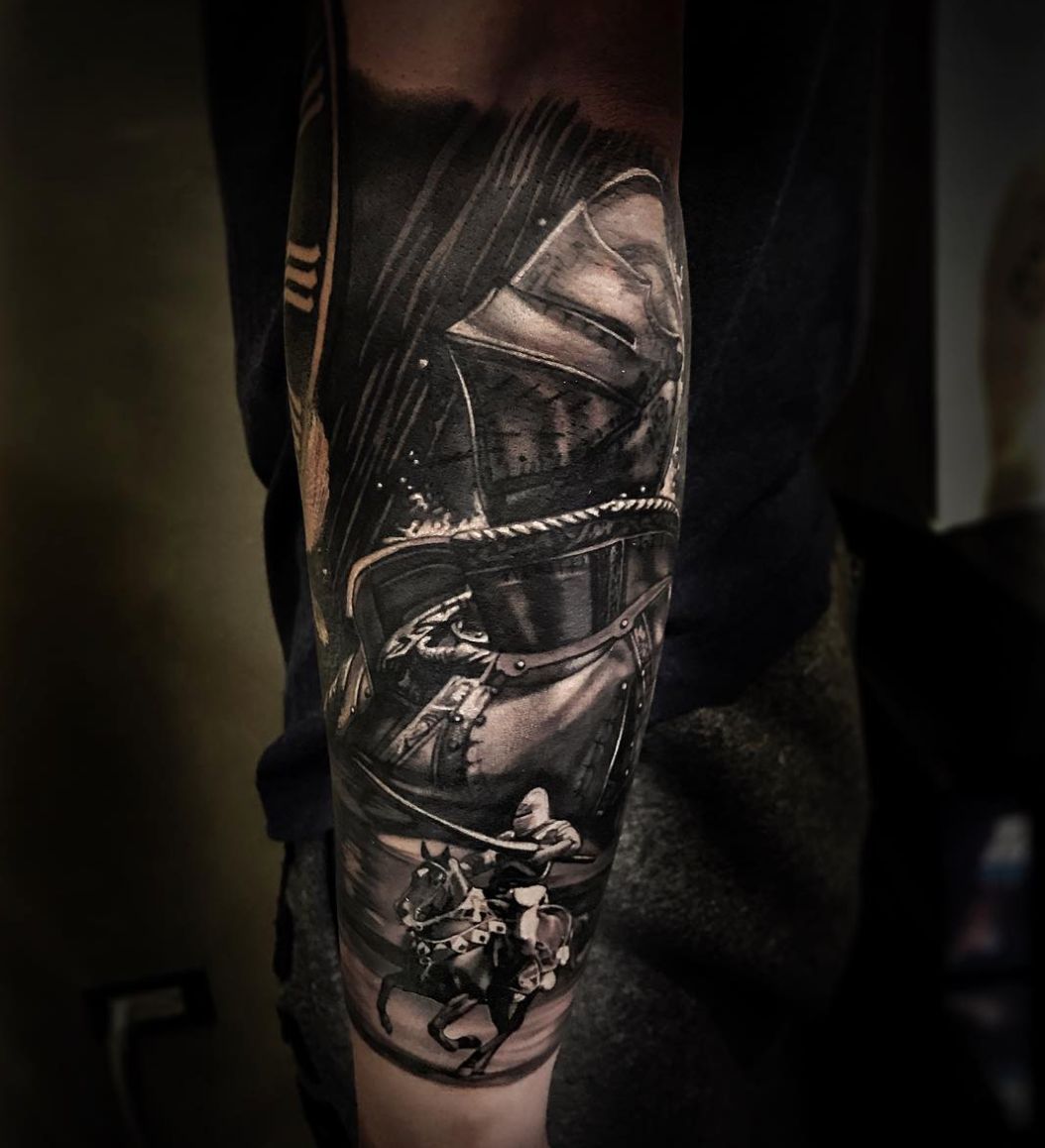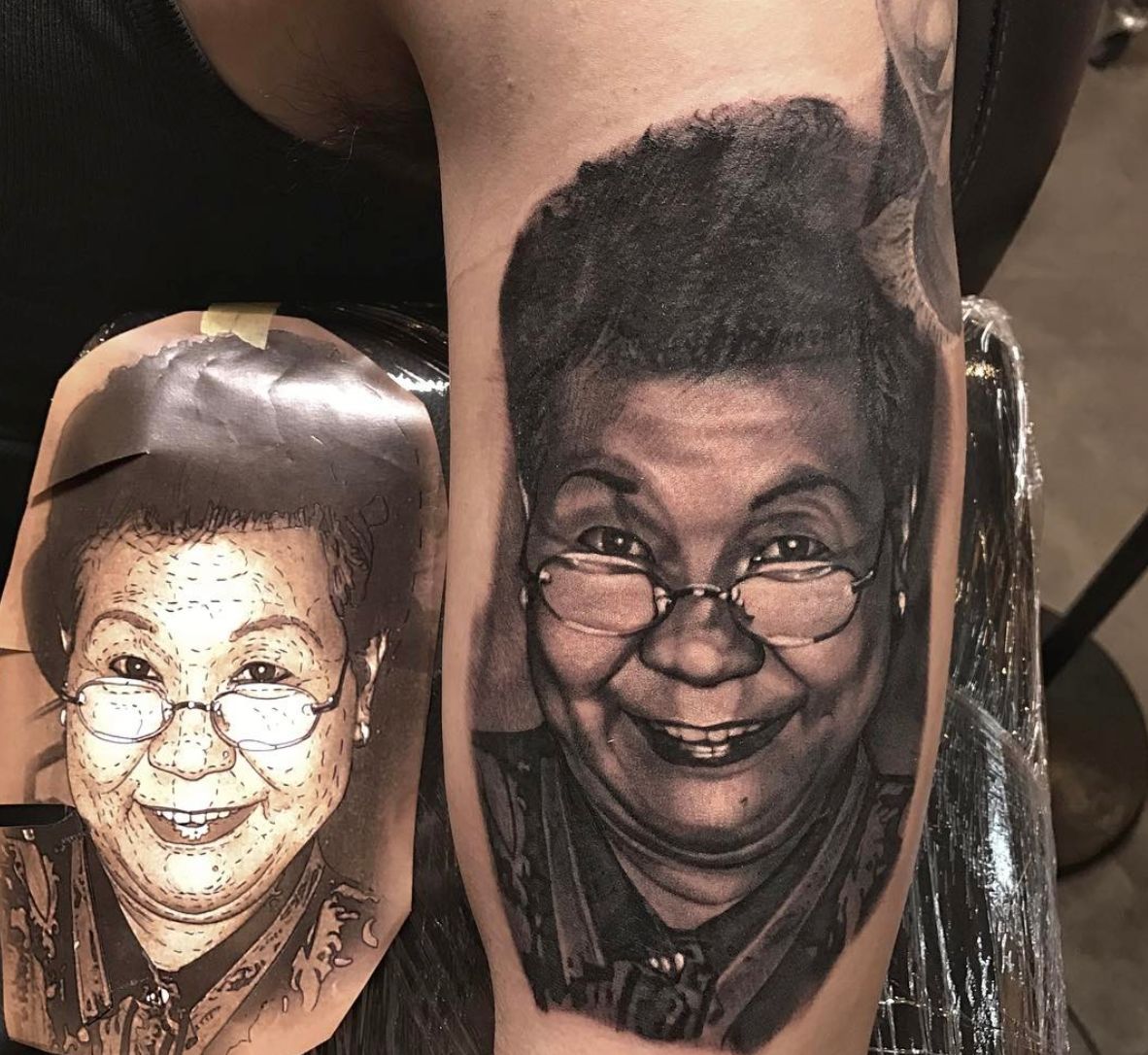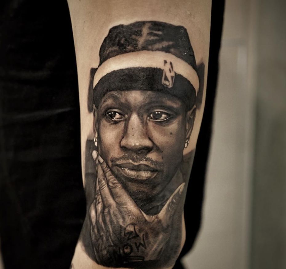 多年的绘画经验给他创作黑灰人像刺青打下了基础,他曾经在12年的澳洲刺青展上拿过黑灰组的世界冠军。