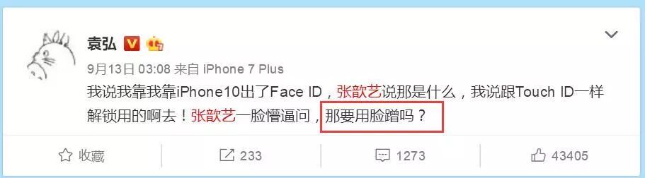 2)iPhone出了Face ID后,袁弘给张歆艺解释说Face ID跟Touch ID一样是解锁用的,张歆艺一脸懵逼问:“那要用脸蹭吗?”