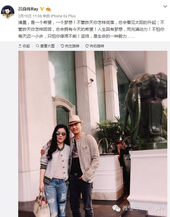 如今吕良伟的公司发展步入正轨,家庭美满,拍剧也慢慢减少了,他就在微博中煮煮鸡汤,秀秀自拍。