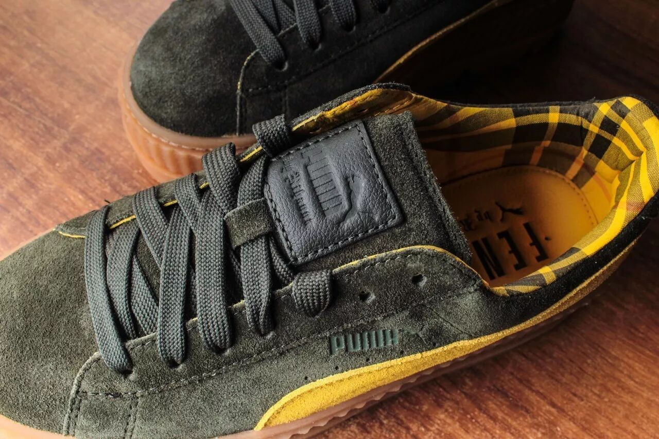 在即将迈入 2017 秋冬之际,Rihanna x PUMA Fenty 又为我们带来了新的惊喜:眼前这款 Rihanna x PUMA Fenty Suede Cleated Creeper 在原有松糕鞋造型的基础上,再度加厚了鞋底,除了金棕色外,还有绿色版本亮相。Rihanna x PUMA Fenty Suede Cleated Creeper 即将在各店铺开售,开售店铺如下: