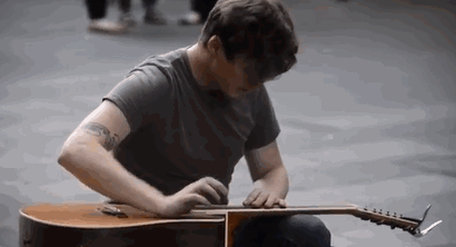 首先他弹琴的姿势就甩了好多吉他手几条街
