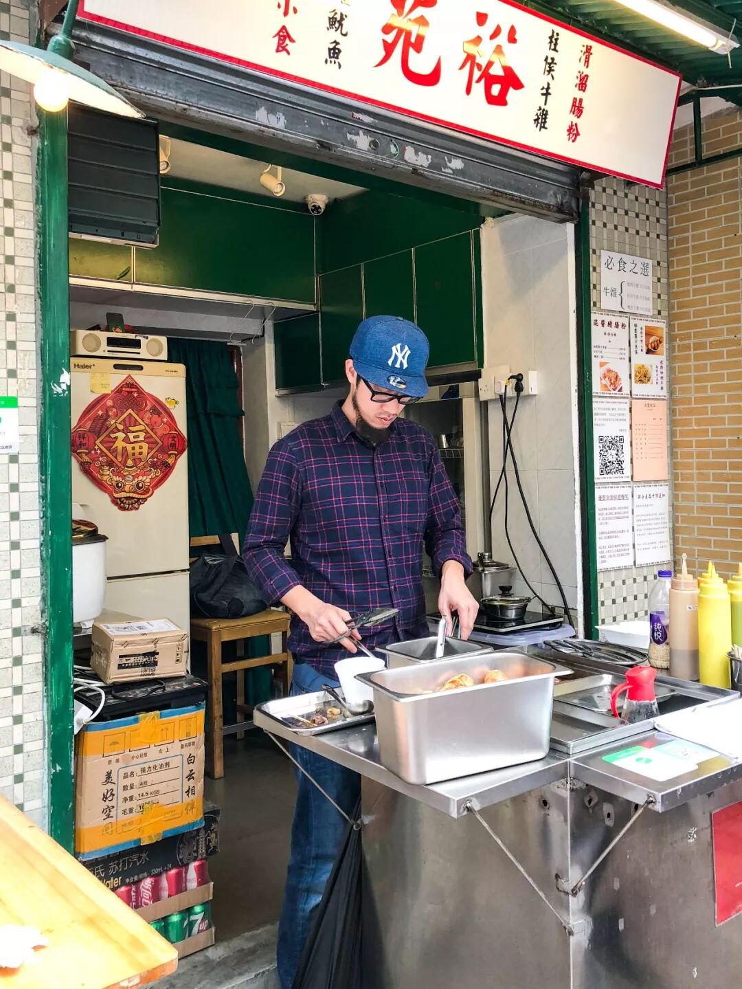 高冷的Lee哥,开口说话控制在五个字以内,“吃什么”,“好,41蚊”,“卖完了”,沉默寡言的,还挺酷