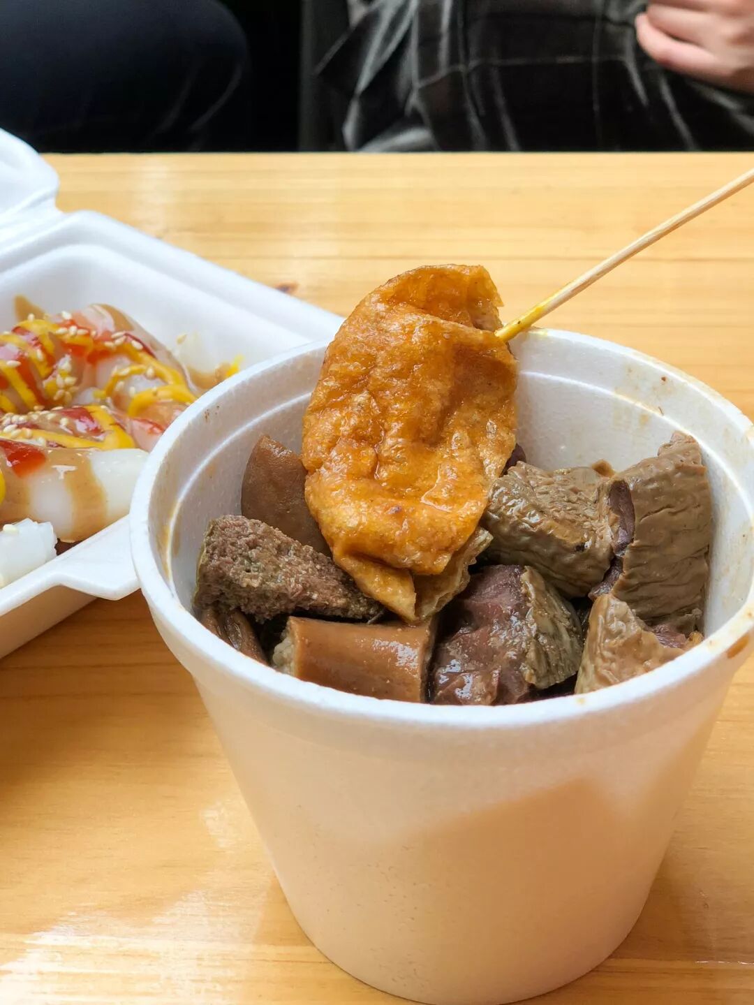 Lee哥不仅有颜,还剪着一手好牛杂,至少别人是这么给我安利的,必点的牛杂有三种,咖喱,柱侯还有面筋牛杂