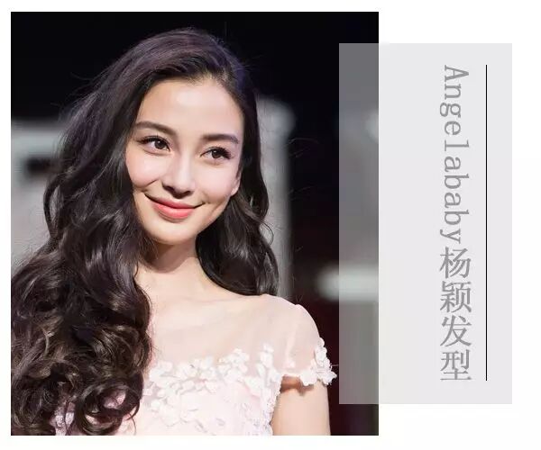 棕黑的烫发卷曲有度,显得顺滑的发丝更是充满光泽感,浪漫唯美,大侧分露出光洁饱满的额头,是Angelababy常用的发型之一。