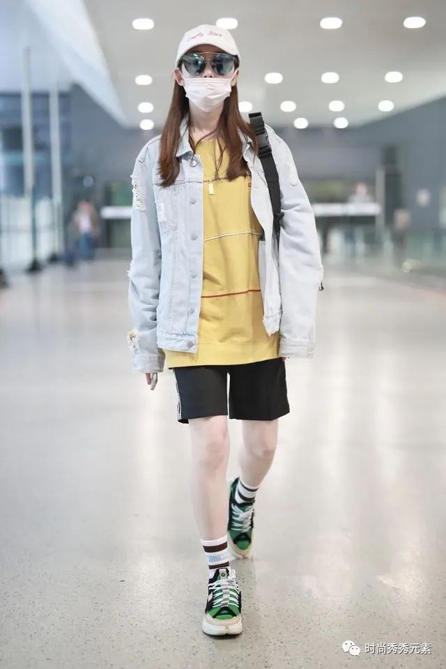 很多女星的私服都偏休闲,蒋梦婕也是这样的。现身机场的这一身搭配就很休闲。一件黄色T恤搭配黑色短裤,宽松版型很随性慵懒,外面搭配的一件牛仔外套,清新减龄又很时髦。平时也钟爱休闲风的小伙伴,可以看看这一身穿着。