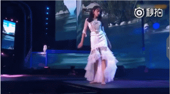 当晚,黄婷婷穿的甜美性感女装,裙摆有点鱼尾裙的效果,倒是挺符合《人鱼》这首歌的