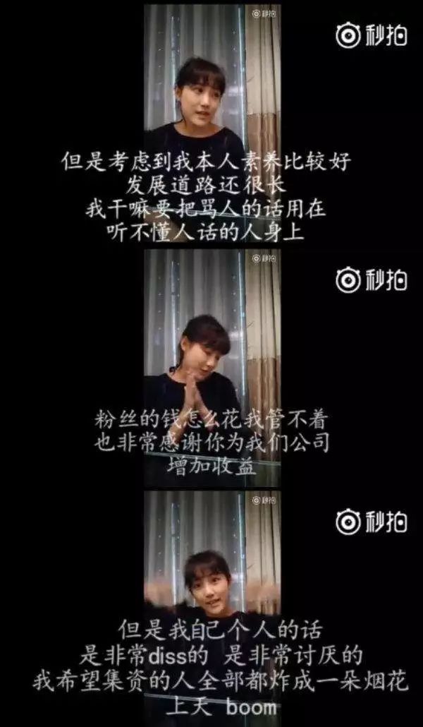 还算了一下粉丝给自己投一百票要花1400,特别不屑地语气表示“切,一千四,老娘衬衫都不止这点钱,可笑,连我一件衬衫都买不起”