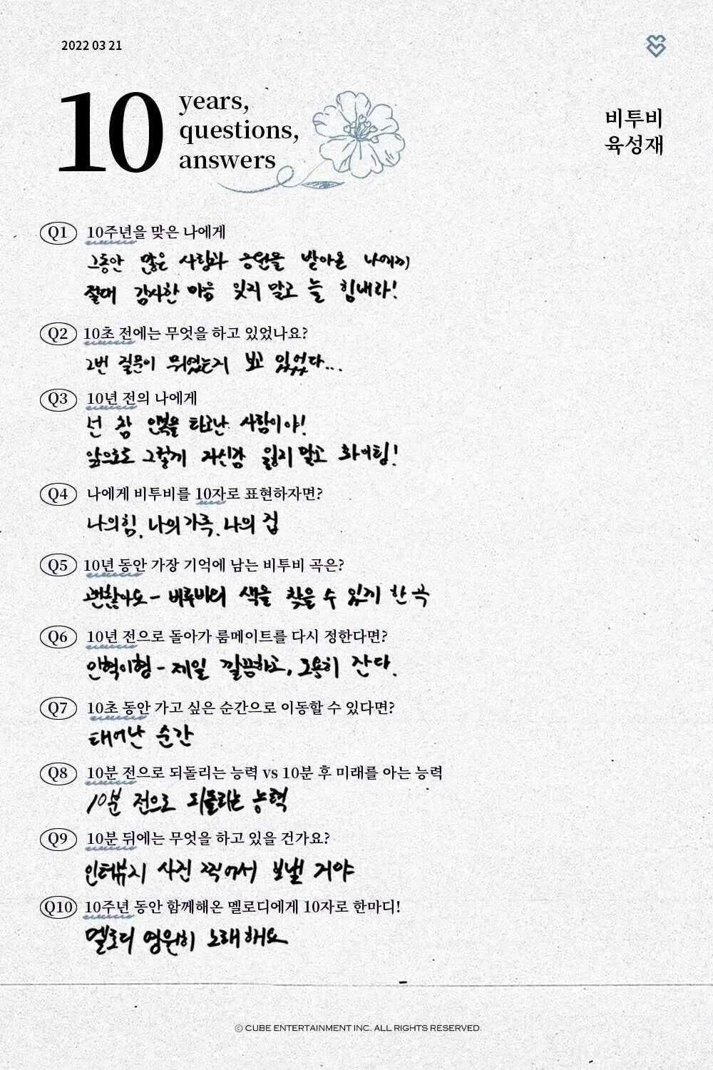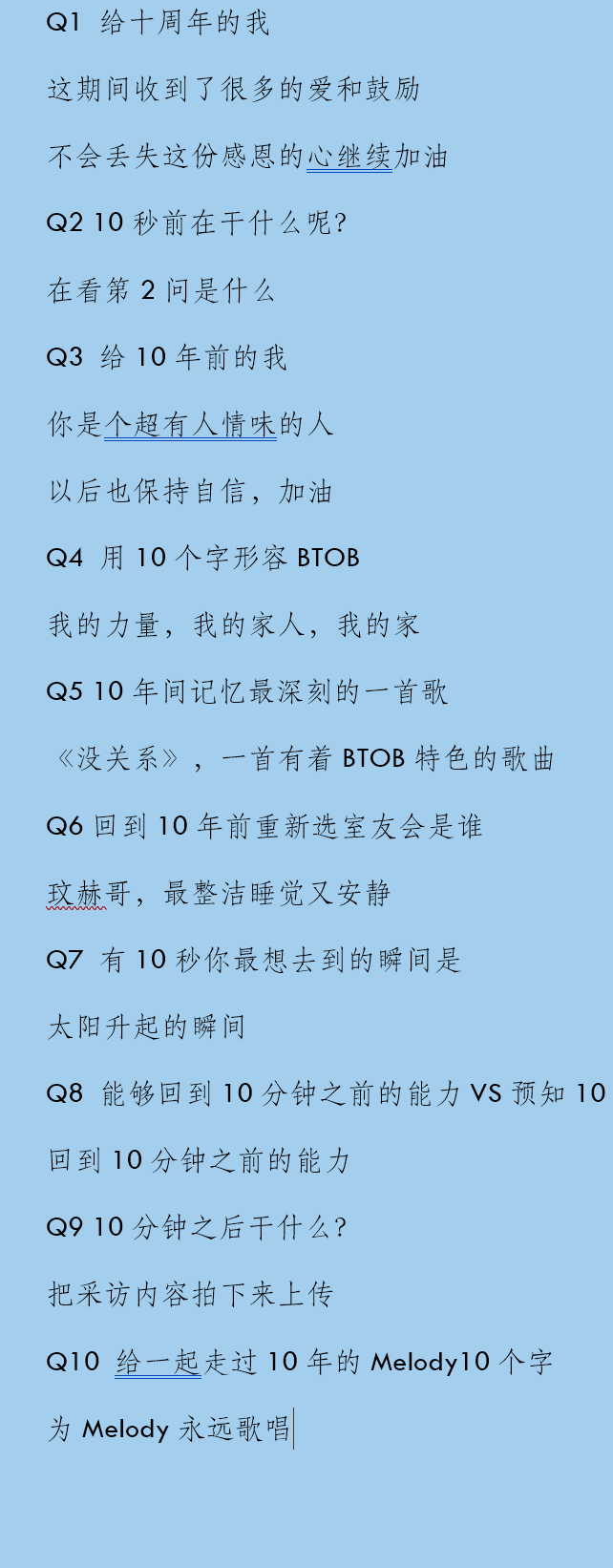 这是BTOB十周年忙内的问答以及手写信,让我们一起翻译一下吧!