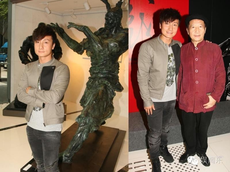 方力申与父亲方毓仁出席北京雕塑家任哲作品展开幕酒会,任哲是小方的好朋友,亦是方父代理的艺术家,大堂展出的四件巨型雕塑是小方的收藏品,价值数百万。小方笑说:「希望他成为世界出名艺术家,我就无忧。」
