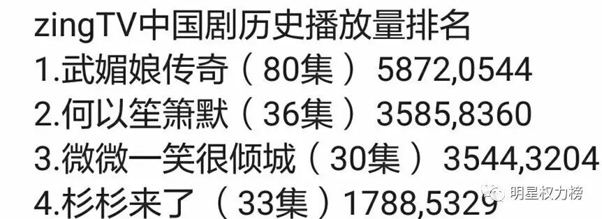 还有人汇总了中国电视剧在这个网站的播放量排名,前四名居然是这几部↓↓↓