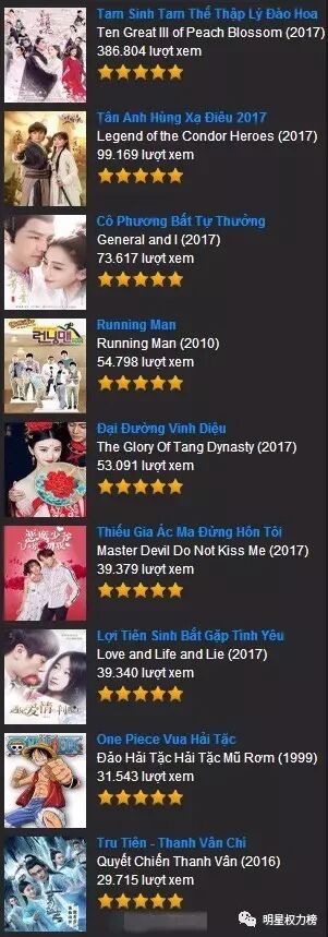 看来越南人民也追剧?这个最近热播剧榜单应该和国内差不多。