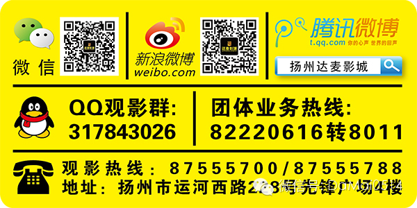 更多影讯,请及时关注达麦影城新浪微博官方平台。关注微博请搜索扬州达麦影城!